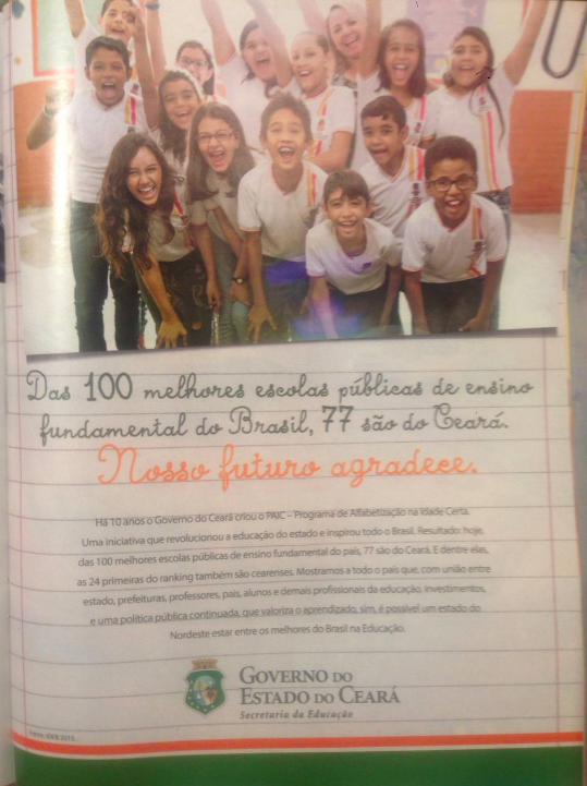 O governo do Ceará pagou anúncios na Veja e na Globo para falar dos resultados no Enem.