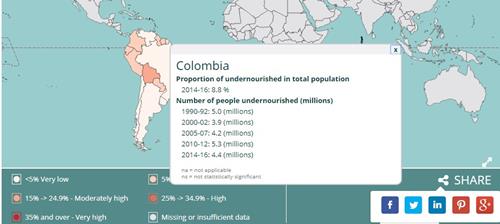 Observe que a fome na Colômbia tem oscilando desde a década de 90, mas não caiu. Em 2002, era de 3,9 milhões de pessoas, hoje é de 4,4 milhões.