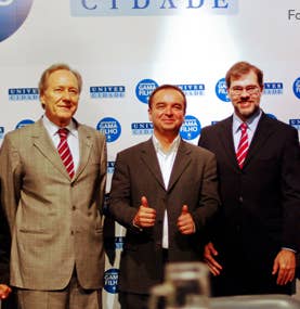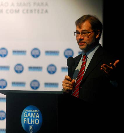Eles participaram também de uma aula magna da Gama Filho. Essa foto foi tirada no evento e divulgada pela universidade. No centro, está Márcio André Costa, diretor da Galileo que depois foi preso pela Polícia Federal.