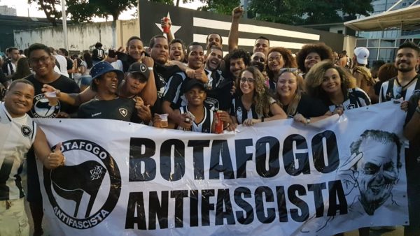 “Segundo o Estatuto do Torcedor, em seu artigo 13A, inciso X, é condição de permanência no estádio utilizar faixas e bandeiras apenas para manifestação festiva e amigável, logo, não será autorizada permanência no local qualquer material que faça referência a ideologia que não diga respeito ao futebol e a manifestações festivas”, escreveu, em péssimo português, a Polícia Militar do Rio de Janeiro ao UOL sobre a retirada da faixa abaixo, ontem, no Estádio Nilton Santos.