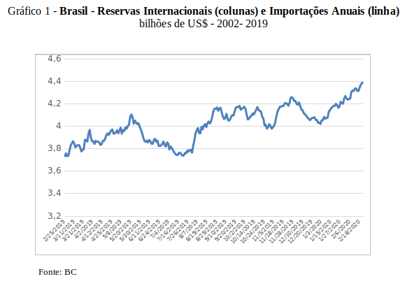 O movimento observado em nossas posições de reservas internacionais é um belo exemplo desse tipo de opção do governo Bolsonaro. Como se sabe, a acumulação desse estoque composto por moedas estrangeiros, títulos financeiros externos, ouro e outros itens guarda, em especial, uma relação direta com o histórico de nossa balança comercial. À medida que um país consegue manter um diferencial positivo de suas exportações em relação às importações, isso permite acumular de forma sistemática essa sequência de ganhos superavitários em dólar ou outro tipo de divisa. Na verdade, a questão é mais complexa, pois esse saldo poderia também ser utilizado para realizar investimentos públicos de longa maturação ou mesmo outro tipo de empréstimo no exterior. A China, por exemplo, faz tudo isso e ainda mantém sob seu controle um volume impressionante de reservas equivalente a US$ 3,1 trilhões. Para se ter uma ideia, esse montante representa por volta de 15% da dívida pública dos Estados Unidos. Mas voltemos ao nosso Brasil.