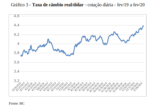 Mas o fato concreto é que foi exatamente a partir de agosto de 2019 que o BC torrou os US$ 30 bi a que nos referimos acima. Perdemos um valor expressivo de nosso estoque estratégico de divisas. Sinalizamos indefinição e fraqueza junto aos especuladores nacionais e internacionais. E mantivemos o dólar perigosamente acima de R$ 4,30 ao longo de fevereiro.