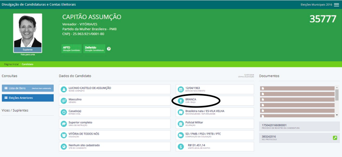 No registro da candidatura à vaga de prefeito de Vitória neste ano houve uma reviravolta. Capitão Assumção afirmou ser pardo, classificação racial que o insere entre os negros.