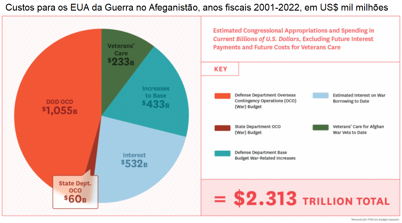 Primeiro: Porque é que, com o fim da Guerra do Afeganistão, o orçamento do Pentágono ainda está a crescer? Mesmo quando o esforço de guerra dos EUA supurou e a seguir desabou em derrota, o Pentágono, segundo os seus próprios cálculos, estava a gastar quase 4 mil milhões de dólares por mês ou US$45 mil milhões por ano naquele conflito e, de acordo com o Projecto Custos da Guerra, US$2,31 milhões de milhões (trillion) desde o seu início. Agora que a loucura e a mentira finalmente acabaram (pelo menos teoricamente falando), após duas décadas de fraude, desperdício e abusos de todo o tipo, não deveria o orçamento do Pentágono para 2022 diminuir em pelo menos US$45 milhões de milhões? Mais uma vez, a América perdeu, mas não deveriam agora os contribuintes americanos serem poupados num mínimo de US$4 mil milhões por mês?